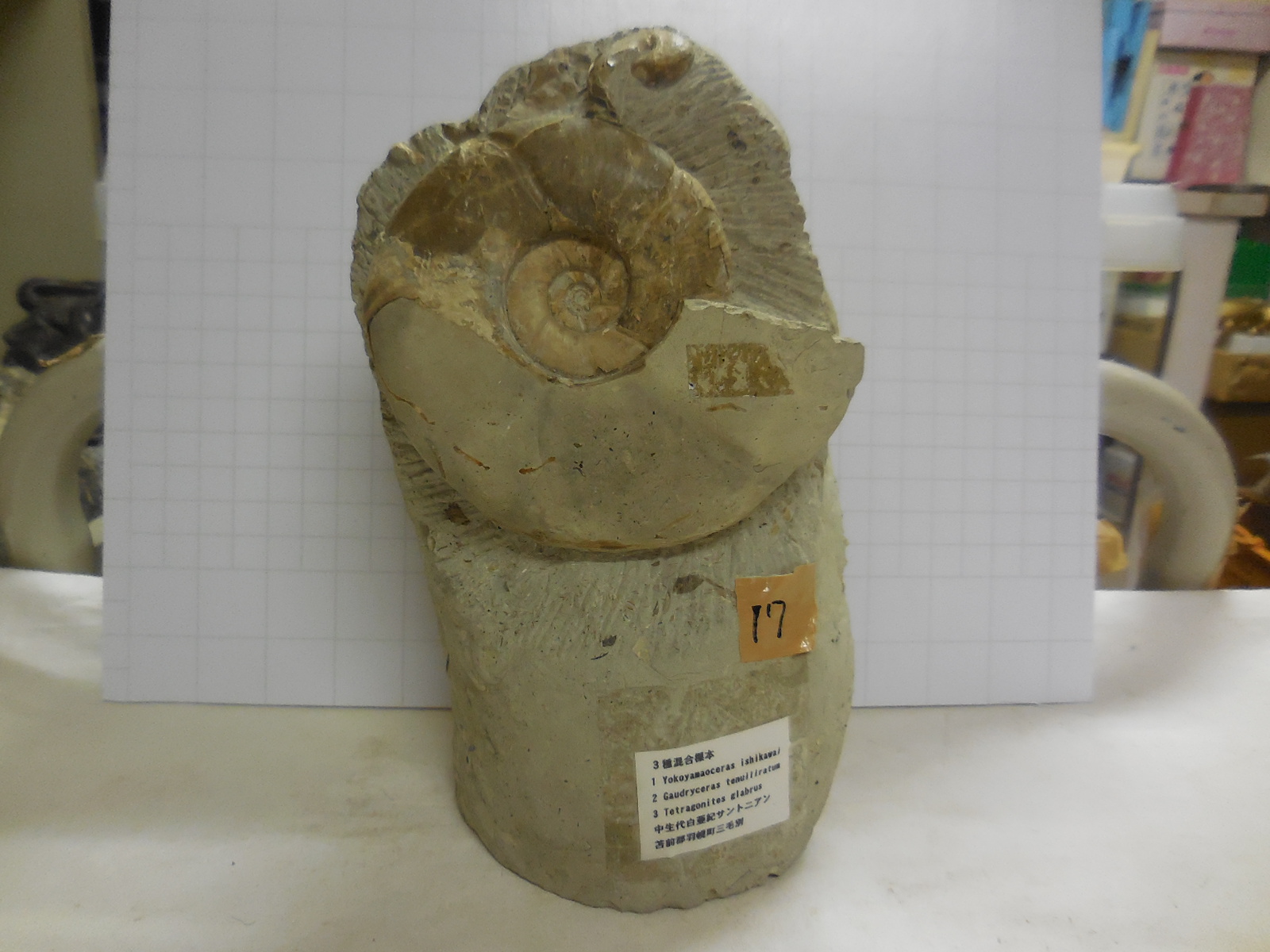 ゴードリィセラス科他 Anagaudryceras yokoyamai (アナゴードリィセラス ヨコヤマイ)- 年代:中生代白亜紀サントニアン