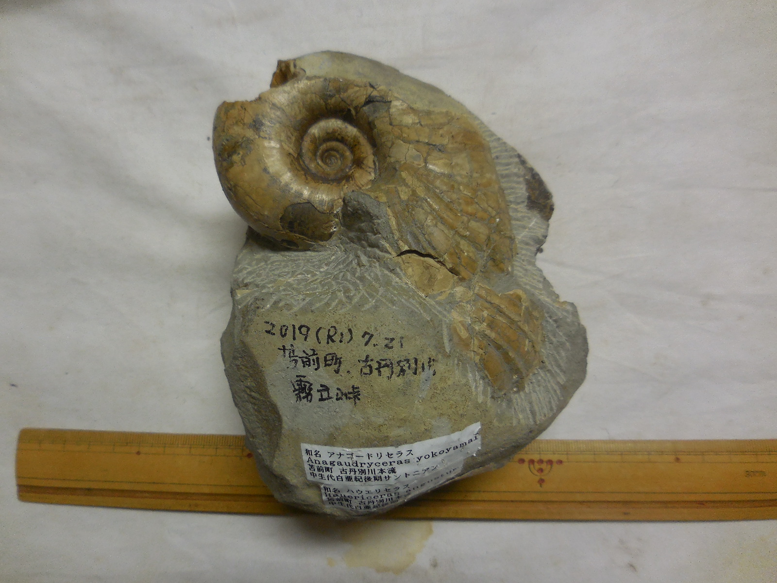 ゴードリィセラス科他 Anagaudryceras yokoyamai (アナゴードリィセラス ヨコヤマイ)- 年代:中生代白亜紀サントニアン
